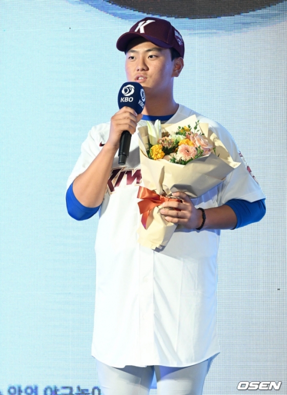 김건희는 지난 15일 열린 2023 KBO 신인 드래프트에서 키움 히어로즈에 1라운드 전체 6번으로 지명받았다. 그가 주목받은 점은 포수이면서도 투수로서 재능도 있다는 점이었다.