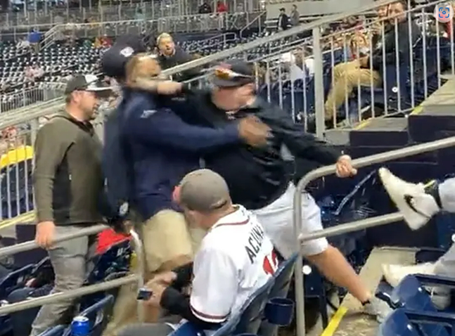 미국 티엠제트(TMZ) 스포츠는 지난달 29일(한국시간) 메이저리그 워싱턴-애틀랜타의 경기가 열린 미국 워싱턴 DC 내셔널스 파크에서 일어난 폭행사건을 보도했다. 매체에 따르면 이날 경기 9회에 한 남성 관중이 자신의 자리가 아닌 홈플레이트 인근까지 내려와 소리를 지르며 소동을 피우자 경기장 좌석 안내원이 다가와 이를 제지하며 제 자리로 돌아가 달라고 했다.