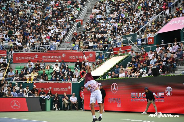 9월24일부터 10월2일까지 열린 코리아오픈에 총 5만 1783명의 관중이 찾았다. 26년 만에 한국에서 열린 ATP 대회인 만큼 많은 테니스 팬들이 몰려들었다. 이날 단·복식 결승전을 보기 위해 찾은 관중만 해도 9931명이나 됐다. 그야말로 구름관중이었다. 정현(26), 권순우(25·당진시청) 등 한국선수가 이미 탈락한 상황이었지만, 관중석을 꽉 채웠다. 이날 복식 경기 도중 비가 내리기도 했다. 하지만 자리를 떠나는 이가 없었다.