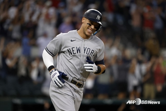 저지는 5일(한국시간) 미국 텍사스주 알링턴 글로브 라이프 필드에서 열린 2022 메이저리그(MLB) 텍사스 레인저스와 원정경기에서 1번타자 우익수로 선발 출전, 1회 첫 타석부터 홈런포를 터트렸다.