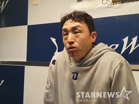 NC 손아섭이 6일 창원 SSG전 종료 후 취재진과 인터뷰를 하고 있다. /사진=양정웅 기자