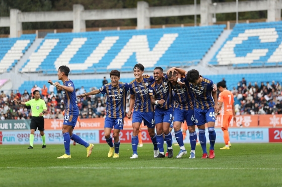 울산은 16일 오후 2시 춘천송암스포츠타운에서 열린 강원FC와 하나원큐 K리그1 2022 37라운드 원정서 엄원상과 마틴 아담의 연속골에 힘입어 2-1 짜릿한 역전승을 거뒀다. 승점 76점으로 조기 우승을 확정했다.