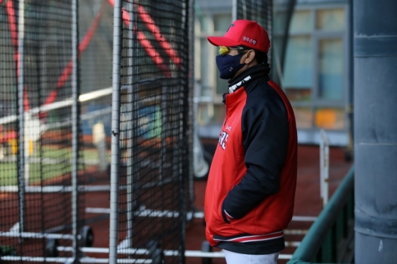 함평-기아챔피언스필드에서 훈련을 지켜보는 김종국 KIA 감독./사진=KIA 타이거즈