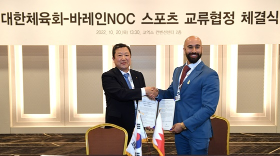 대한체육회는 지난 20일 대한민국 서울에서 열리고 있는 국제올림픽위원회연합회(ANOC) 총회(General Assembly) 기간 중 바레인NOC 및 헝가리NOC와 스포츠교류협정을 체결했다고 21일 밝혔다.