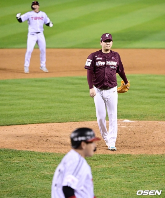 이들을 상대로 키움은 우완 언더스로 양현(30)을 꺼내 들었다. 투심 패스트볼이 강점인 투수인 만큼 땅볼을 유도하겠다는 의도가 보였다. 그러나 첫 타자부터 어긋났다. 양현은 오지환에게 중견수 희생플라이로 1점을 내줬다. 그 다음이 문제였다. 문보경에게 스트레이트 볼넷을 내줬고 홍창기에게도 초구 파울 후 볼만 연속 4개를 던지며 1사 만루 위기를 자초했다.