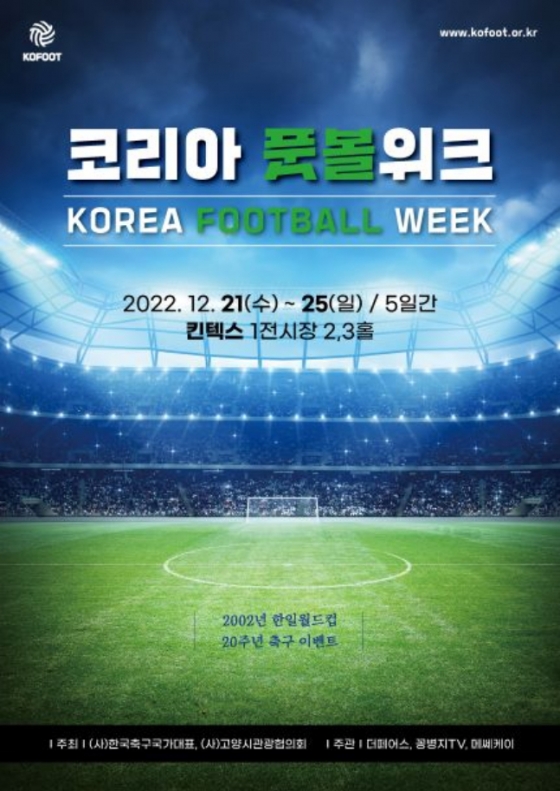 2022 코리아풋볼위크는 2002년 한일월드컵 20주년 기념행사로 (사)한국축구국가대표, (사)고양시관광협의회 주최로 개최되며, 풋볼리그(유소년~성인 500개팀)와 축구 전시회(200개사 500부스)로 운영된다.