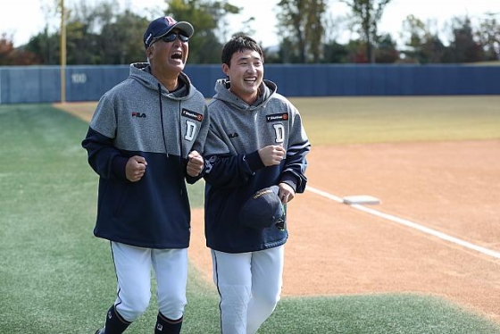 현역 시절 KBO 리그 최고의 거포였던 이 감독의 지도를 받아서일까. 두 선수는 이번 가을 발전한 모습을 보였다. 김인태는 지난 23일 SSG와 연습경기에서 4타수 3안타(1홈런) 2타점 2득점으로 맹활약했다. 이 감독도 경기 후 "김인태가 밀어쳐 좋은 타구를 만들어낸 부분이 인상적이었다"고 말할 정도였다. 올 시즌 단 하나의 홈런도 기록하지 못했던 장승현도 연습배팅에서는 대포를 터트렸다.