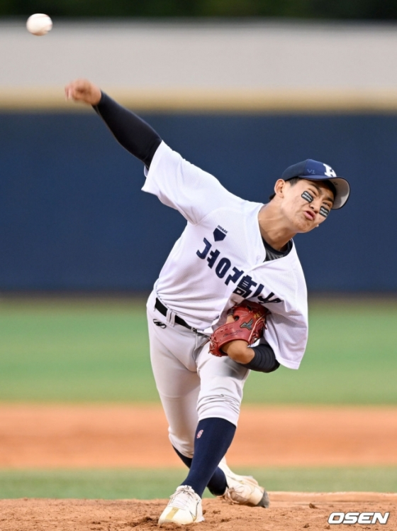 경남고 출신인 신영우는 올해 신인 드래프트에서 NC의 1라운드 전체 4순위 지명을 받은 선수다. 최고 시속 154km의 패스트볼과 프로 수준의 무브먼트를 지닌 너클커브가 인상적이었다. 3학년인 올해 11경기에 등판해 3승 1패 평균자책점 2.47을 기록한 그는 특히 50⅔이닝 85탈삼진으로 위력적인 구위를 뽐냈다.