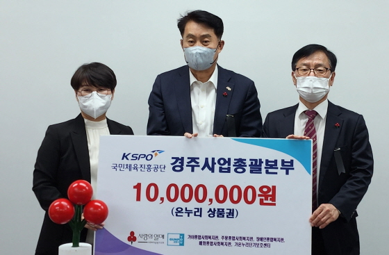 국민체육진흥공단 경주사업총괄본부는 2일 군포시청 회의실에서 열린 기부금 전달식에서 군포시 관내 복지기관 5곳에 기부금(1000만원)을 전달했다고 밝혔다.