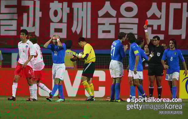 매체에 따르면 이탈리아는 2002 월드컵 조별리그에서 멕시코에 이어 G조 2위로 16강에 진출했다. 홈팀인 한국과 만났다. 독특하고 무표정인 에콰도르인 출신 주심인 바이런 모레노가 경기를 관장하게 되는 불운과 마주했다.