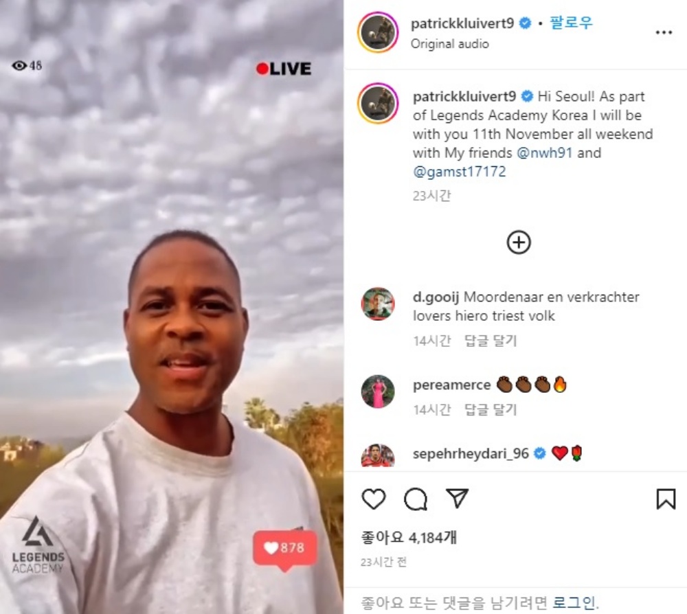 뿐만 아니라 클라위베르트는 감스트, 남우현의 인스타그램 계정 해시태그를 남기며 친분을 과시해 국내외 팬들에게 큰 호응을 얻었다. 클라위베르트의 해당 동영상은 하루가 채 지나기 전에 좋아요 수 4,000개를 돌파하며 이슈를 모았다. 아재랩 관계자는 "레전드 축구선수인 클라위베르트와 함께 멋진 추억을 만들 수 있는 절호의 기회"라며 "다채로운 이벤트와 즐길거리가 가득한 만큼 축구를 사랑하는 이들의 많은 참여를 바란다."고 전했다.