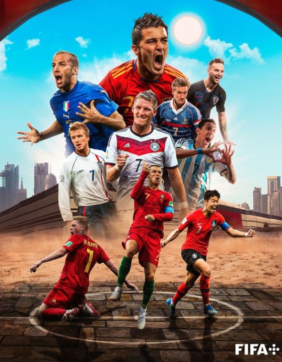 국제축구연맹(FIFA)은 14일 카타르 월드컵 개막을 앞두고 SNS(소셜네트워크서비스)를 통해 "2022 카타르 월드컵 개막까지 7일밖에 남지 않았다"면서 역대 월드컵 무대를 빛낸 7번 선수들 10명을 공개했다.