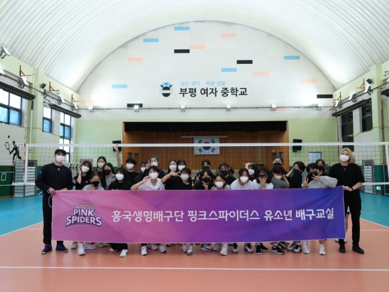 흥국생명 핑크스파이더스가 코로나19로 중단됐던 유소년 배구교실을 3년 만에 재개한다.