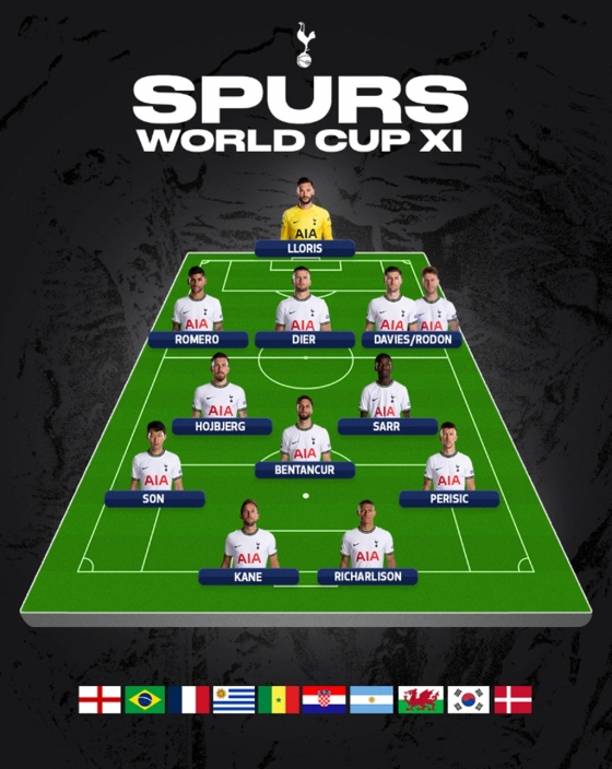 손흥민을 비롯해 토트넘이 배출한 월드컵 멤버를 보면 해리 케인, 에릭 다이어(이상 잉글랜드), 조 로든, 벤 데이비스(이상 웨일스), 히샬리송(브라질), 이반 페리시치(크로아티아), 로드리고 벤탄쿠르(우루과이), 파페 마타르 사르(세네갈), 피에르-에밀 호이비에르(덴마크), 크리스티안 로메로(아르헨티나), 위고 요리스(프랑스) 등이다.