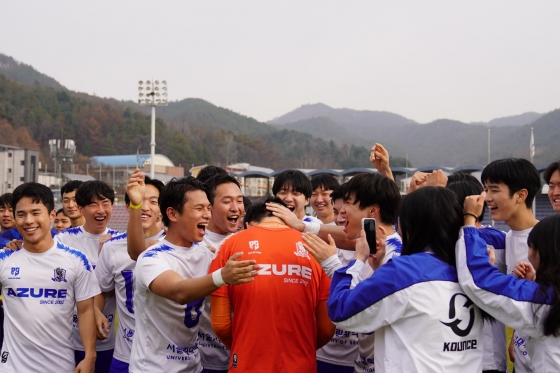 [스포탈코리아] 한재현 기자= 서울시립대의 아주르가 탄탄한 수비를 바탕으로 2022 제14회 양구 국토정중앙기 추계전국대학동아리축구대회 정상에 올랐다. 그 중심에는 부상 투혼을 발휘한 신입생 골키퍼 제갈웅의 활약이 있었다.