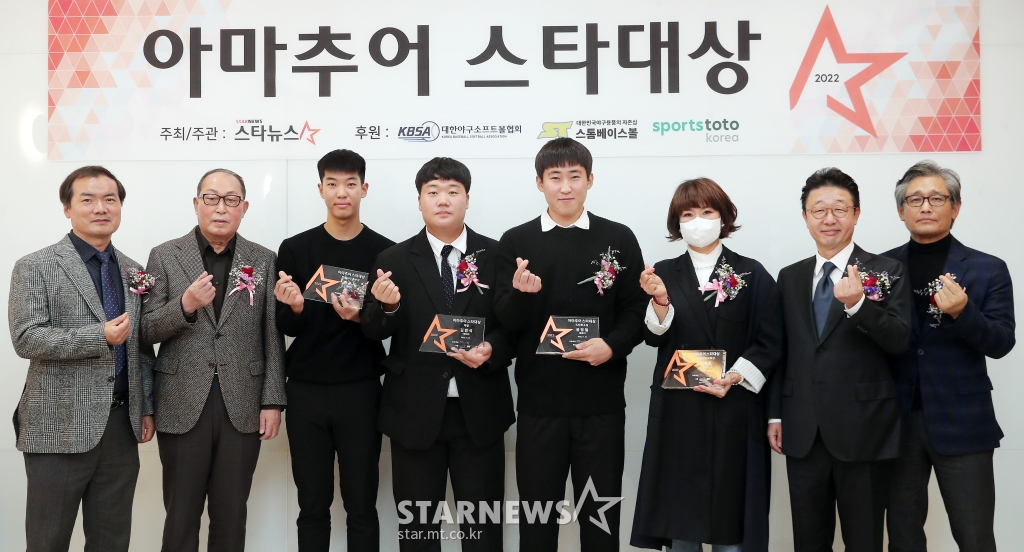 스포츠야구'2022 아마추어 스타대상' 성황리 개최[★포토]발행 : 2022.11.24 ・ 15:04김창현 기자스타뉴스 주최·주관 '2022 아마추어 스타대상' 시상식이 24일 오후 서울 송파구 잠실야구장 콘퍼런스룸에서 열렸다.이날 박준철 스타뉴스 대표(왼쪽부터), 김인식 KBO 총재 특별고문, 장충고 황준서, 경남고 김범석, 충암고 윤영철, 경기고 이상준 어머니 이대경 씨, 이종훈 대한야구소프트볼협회장, 양해영 대한야구소프트볼협회 부회장이 기념촬영을 하고 있다. 2022.11.24<저작권자 © 스타뉴스, 무단전재 및 재배포 금지>스타대상야구추천 기사김창현 기자기자홈좋아요 스포츠-야구의 인기 급상승 뉴스스포츠-야구의 최신 뉴스