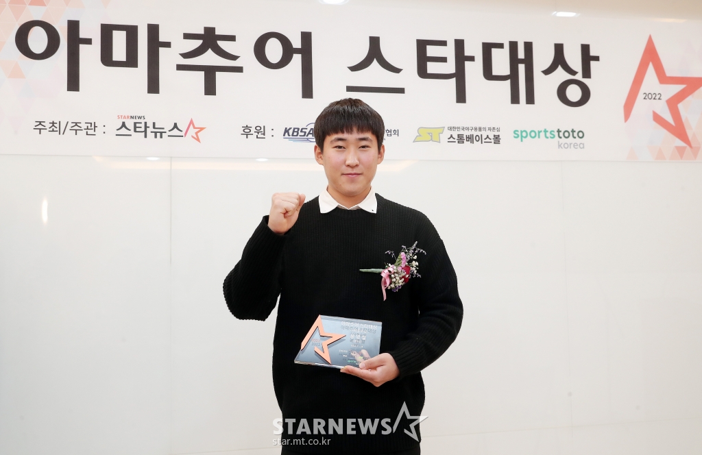 스포츠야구'아마추어 스타대상' 스타투수상 윤영철[★포토]발행 : 2022.11.24 ・ 15:18김창현 기자장충고등학교 황준서 선수가 24일 오후 서울 송파구 잠실야구장 콘퍼런스룸에서 열린 스타뉴스 주최·주관 '2022 아마추어 스타대상'에서 미래스타 투수상을 수상한 뒤 포즈를 취하고 있다. 2022.11.24<저작권자 © 스타뉴스, 무단전재 및 재배포 금지>스타대상야구추천 기사김창현 기자기자홈좋아요 스포츠-야구의 인기 급상승 뉴스스포츠-야구의 최신 뉴스