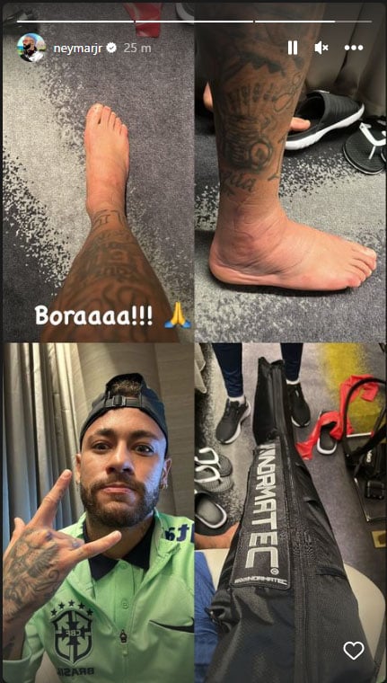 네이마르는 27일(한국시간) 자신의 인스타그램 스토리를 통해 여러 장의 사진을 공개했다. 공개된 사진 속에는 부상당한 네이마르의 발목 상태가 담겼다.