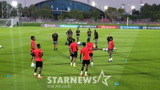 [도하(카타르)=김명석 기자] 벤투호에 부상 악재가 이어지고 있는 가운데 결전을 앞둔 가나는 부상자 없이 전원 훈련에 나섰다. 훈련에 나선 선수들의 등번호까지 모두 공개하는 자신감 속에 한국전을 대비했다.