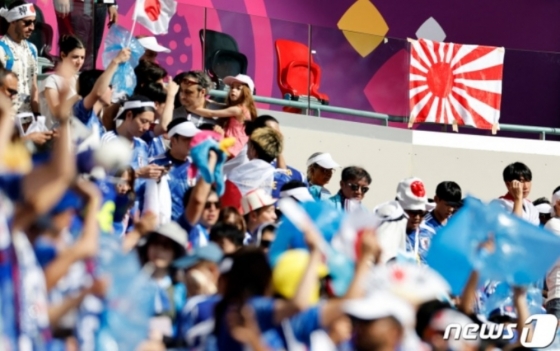 [스포탈코리아=카타르(도하)] 이현민 기자= 또 정신 못 차렸다. 일본 축구 팬들이 코스타리카전에 욱일기를 내걸었다가 현장 관계자들에게 제지를 당했다.
