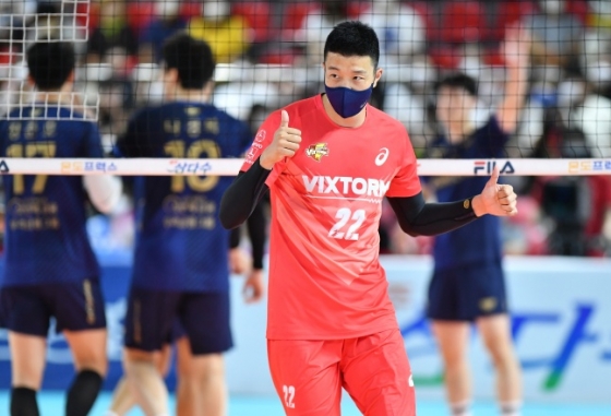 신영석(36·한국전력)이 데뷔 13년 차에도 V리그 최고의 미들블로커로 군림 중이다. 총 8번의 블로킹 1위 기록은 전무후무하다.