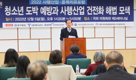국민체육진흥공단이 5일 국회 의원회관 제3세미나실에서 청소년 도박 예방과 사행산업 건전화 해법 모색이라는 주제로 '2022 사행산업ㆍ중독치유 포럼'을 개최했다.