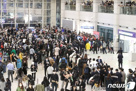 축구팬들도 선수들의 열정과 투혼을 느꼈다. 인천국제공항이 정신 없던 것도 이 같은 이유. 이날 태극전사들을 축하하고 환영해주기 위해 많은 축구 팬들이 모여 장사진을 이뤘다. 선수들이 도착하기 훨씬 전부터 입국장 출구 근처는 물론, 2층에도 줄이 길게 이어졌다.