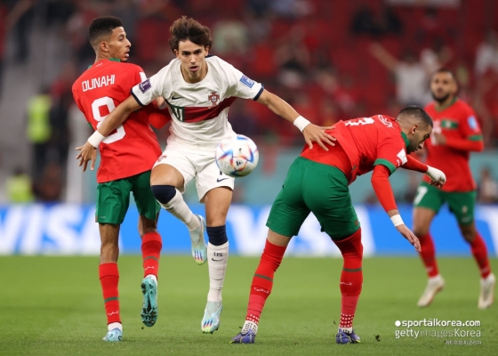 모로코는 11일(한국시간) 카타르 도하 알투마마 스타디움에서 2022 국제축구연맹(FIFA) 카타르월드컵 포르투갈과 8강전을 치르고 있다.