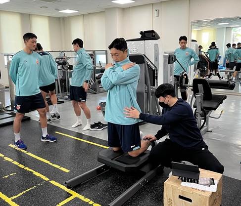 핏투게더(Fitogether)의 지원으로 13일에 진행된 이번 측정은 햄스트링, 무릎 내외측 상태 및 전반적 근육 등 피지컬적 요소와 스프린트 수치, 점프력 등 퍼포먼스적 요소를 측정했다. 운동부하 강도를 예측해 부상 위험도를 감소시키고, 신체 상태에 맞는 체계적 훈련을 설계하기 위함이다.