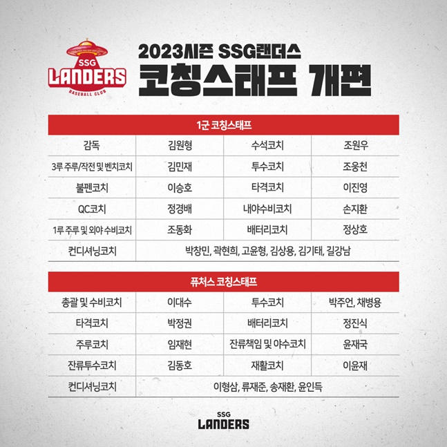 SSG 랜더스는 15일 2023 시즌을 대비해 코칭스태프를 개편했다고 발표했다.