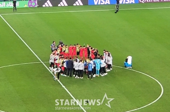 대한민국 축구 대표팀 선수들이 포르투갈전 승리 후 그라운드에 모여 16강 명운이 걸린 우루과이-가나전 결과를 함께 기다리던 순간이 카타르 월드컵 10대 명장면에 선정됐다.