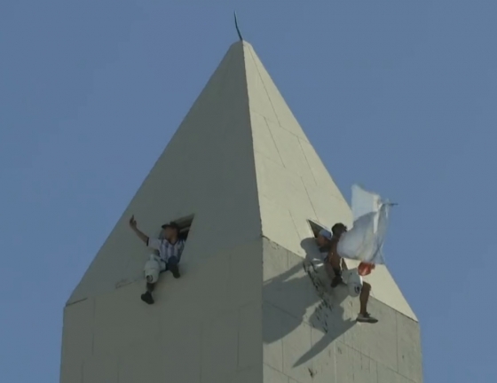 영국 축구 매체 '풋볼 데일리'는 20일(이하 한국시간) "아르헨 팬들은 대표팀의 월드컵 우승을 축하하기 위해 70m에 달하는 오벨리스코 기념비 꼭대기에 매달렸다"라고 전했다.