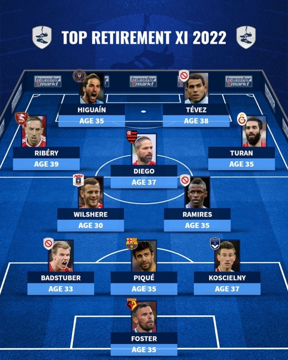 축구 통계 사이트 ‘트랜스퍼마켓’은 27일 “레전드여, 벌써 그립다”며 2022년 현역 은퇴를 선언한 선수들로 베스트 11을 꾸렸다.