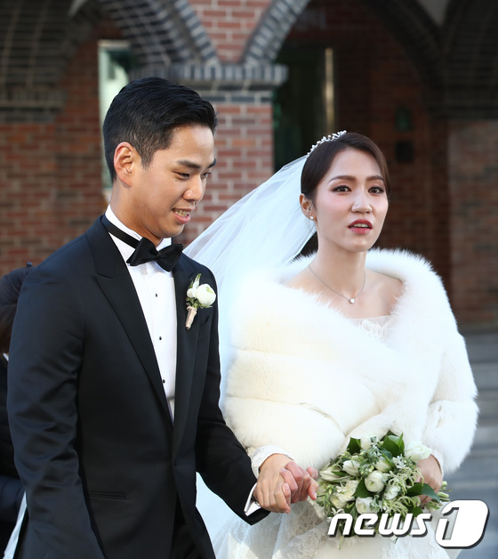 '세계 랭킹 1위' 여자골프스타 리디아고가 정태영 현대카드 부회장의 막내아들 정준씨와 30일 명동성당에서 백년가약을 맺었다.