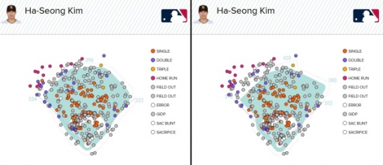 타격에 대한 기대감도 무시할 수 없다. 올 시즌 김하성은 150경기 타율 0.251, 11홈런 59타점 12도루, OPS 0.708, 조정 OPS 107로 리그 평균 이상의 생산성을 보여줬다. 투수 친화적인 구장이 3개(다저스타디움, 펫코 파크, 오라클 파크)나 되는 내셔널리그 서부지구에서 시즌 대부분의 경기를 치렀음에도 나온 성적이다.