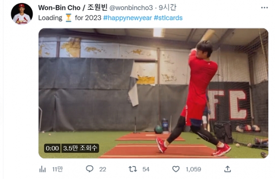 조원빈은 2일(한국시간) 자신의 SNS에 영상을 올렸다. 여기에서 조원빈은 실내 연습장에서 타격 훈련에 여념이 없는 모습이었다.