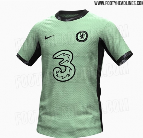 유출된 첼시의 2023/24시즌 서드 유니폼은 민트색이다. 소매, 스폰서, 팀 로고는 검은색으로 강조했다.