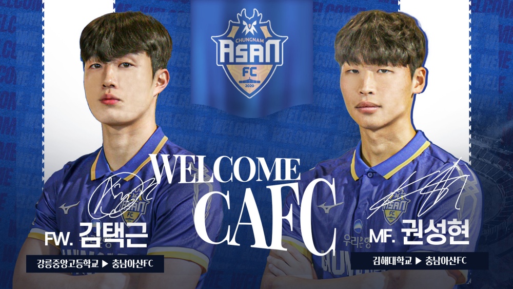 [스포탈코리아] 곽힘찬 기자= 충남아산프로축구단(구단주 박경귀, 이하 충남아산)이 구단의 미래를 이끌 ‘U-22 자원’ 미드필더 권성현, 공격수 김택근을 영입했다.