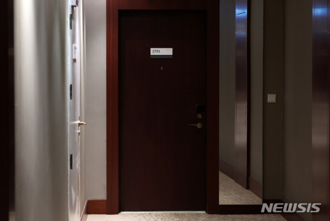 4. 안덕수 씨는 치료와 숙박에 필요한 호텔룸을 직접 예약했습니다. 이 방은 선수단과 같은 호텔에 있었지만, 선수들이 묵는 층과 다르고 동선도 구분돼 있었습니다.
