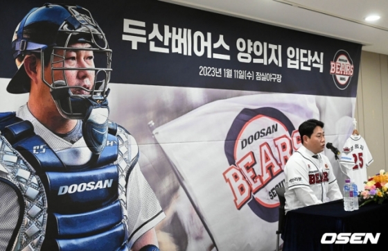 한편 2022 시즌이 끝난 뒤 FA(프리에이전트) 자격을 획득한 양의지는 지난해 11월 22일 두산 베어스와 4+2년 총액 152억원에 계약했다. 계약 조건은 첫 4년 계약금 44억원, 연봉 총액 66억원이며 2026시즌 종료 후 인센티브 포함 2년 최대 42억 원의 선수 옵션이 포함됐다.