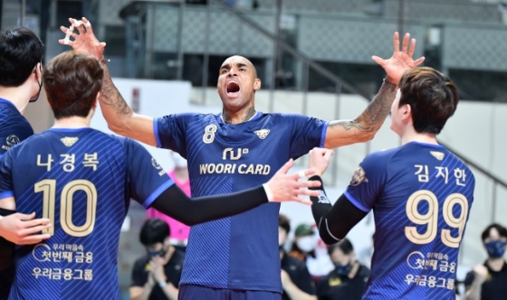 우리카드는 14일 서울 장충체육관에서 열린 도드람 2022~2023 V리그 4라운드 정규시즌 경기에서 대한항공에 세트 스코어 3-2(22-25, 26-24, 25-22, 22-25, 21-19)로 승리했다.