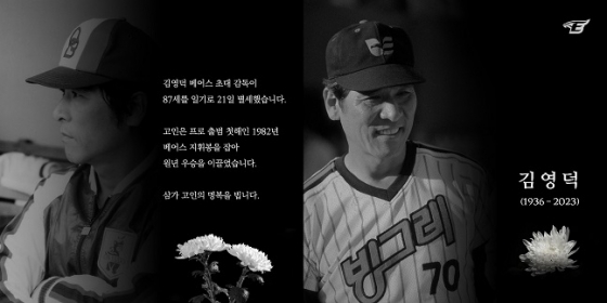 KBO 리그에서 중요한 발자취를 남긴 김영덕 전 감독의 별세 소식에 추모가 이어지고 있다.