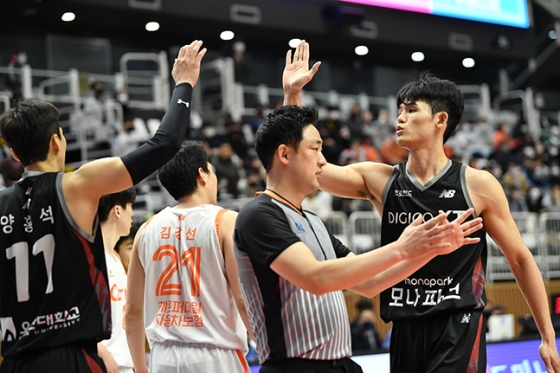이날 KT 양홍석은 16점에 12리바운드 6어시스트, 재로드 존스는 18점 13리바운드로 나란히 '더블더블'을 기록했다. 하윤기도 팀 최다인 22점을 기록했고, 김영환도 10점으로 힘을 보탰다.