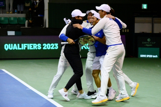 박승규 감독(KDB 산업은행)이 이끄는 한국은 5일 서울 올림픽공원 실내테니스장에서 열린 2023 데이비스컵 예선에서 전날(4일) 2패의 부진을 딛고 3연승에 성공, 3-2 역전극을 만들어냈다.
