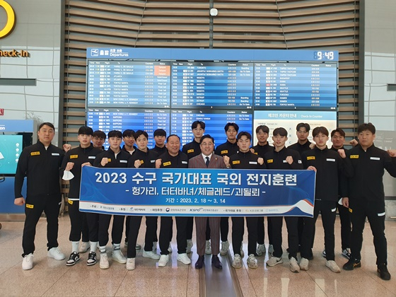 진만근, 김기우 지도자가 이끌고 주장 권대용(28·경기도청) 외 13명으로 구성된 2023년도 대표팀은 헝가리의 터터바녀, 체글레드를 연고지로 둔 헝가리 수구 리그의 프로구단과 일주일씩 합동 훈련에 들어간다. 이후 괴될레에서 헝가리 18세 이하 대표팀의 지도자와의 특훈까지 총 3주간의 일정을 소화하고 3월 14일 귀국할 예정이다.