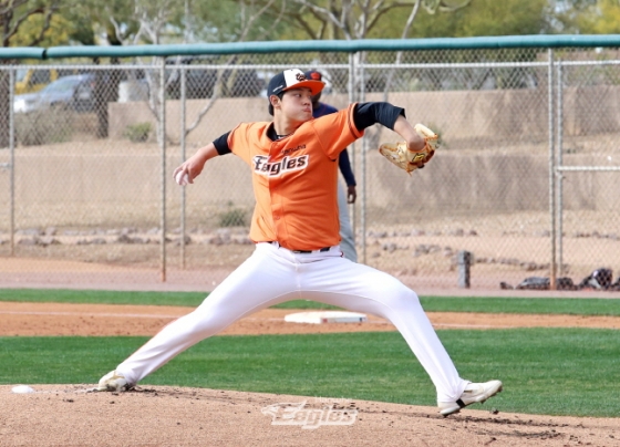 새 단장에 나선 한화 이글스가 또 다른 '오렌지 군단' 네덜란드를 상대로 기분 좋은 승리를 챙겼다. 속구 최고 시속 156㎞를 찍은 우투수 문동주(20)의 호투가 돋보였다.