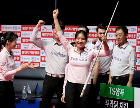 올 시즌 전기리그에선 3위였던 블루원은 후기리그에서 2위를 차지하며 종합 2위로 포스트시즌에 진출했다. PO에서 하나카드 원큐페이에 3승(어드밴티지 1승 포함)을 거둔 블루원은 우승컵을 두고 다시 한 번 웰컴을 넘어야 하는 과제를 안았다.