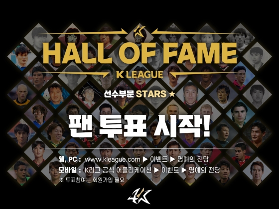 [스포탈코리아] 박주성 기자= 한국프로축구연맹(총재 권오갑, 이하 ‘연맹’)이 올해 프로축구 출범 40주년을 기념해 신설한 ‘K리그 명예의 전당’의 선수부문 팬 투표가 3월 1일(수) 시작됐다.