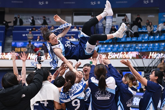 여기에 신한은행 후배들도 한채진을 헹가래 치며 감동의 피날레를 장식했다. WKBL도 한채진을 향해 "끝이 아닌 새로운 시작. 그동안 고생 많았다"고 격려 메시지를 보냈다. 뜨거운 작별에 한채진도 북받쳐 오르는 감정을 이기지 못한 채 눈물을 흘렸다.