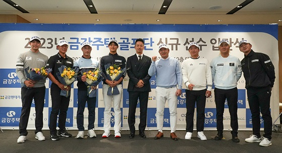 금강주택은 아시안투어 인터네셔널 시리즈 코리아 우승자 옥태훈(25)을 필두로 허인회(36), 최호성(50), 김승혁(37), 신용구, 최영준, 김경민, 한태현까지 총 8명으로 구성됐다. 이들은 2023 시즌부터 금강주택의 글자와 로고가 새겨진 의류와 모자를 쓰고 KPGA 투어를 누빌 예정이다.